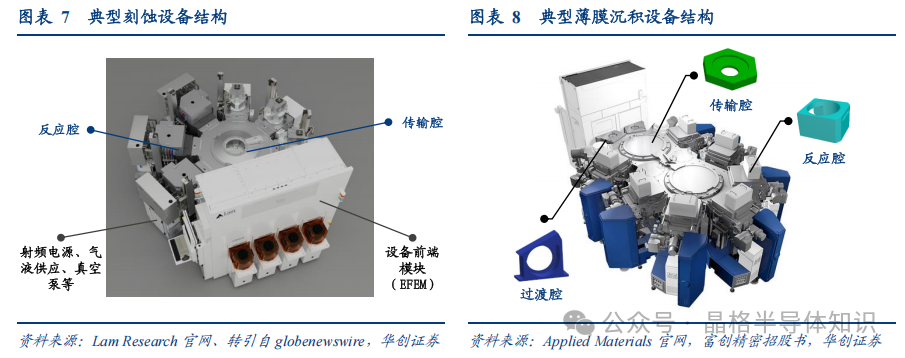 過渡腔:是設(shè)備中晶圓真空環(huán)境入口,晶圓從外部運(yùn)輸至設(shè)備入口,經(jīng)過前端模塊(EFEM)后進(jìn)入過渡腔,方從大氣環(huán)境轉(zhuǎn)換為真空環(huán)境,后續(xù)再進(jìn)入真空環(huán)境的傳輸腔、反應(yīng)腔進(jìn)行工藝反應(yīng)。過渡腔以鋁合金為主,技術(shù)相對簡單。 傳輸腔:是晶圓在過渡腔和反應(yīng)腔之間進(jìn)行轉(zhuǎn)移的中間平臺。傳輸腔材料主要是不銹鋼,腔體需要保證密封性和真空度,同時(shí)由于傳輸腔需要與不同工藝的反應(yīng)腔連接,也需要采用不同的表面處理工藝來保證潔凈度和耐腐蝕性。傳輸腔主要由腔體、中央的真空機(jī)械手、傳輸腔與反應(yīng)腔連接處的門閥,以及各種真空密封件組成。 反應(yīng)腔:是晶圓加工和生產(chǎn)的工作空間,由于多種工藝氣體會流入反應(yīng)腔內(nèi)發(fā)生化學(xué)反應(yīng),其對潔凈度和耐腐蝕性要求較高,尤其是先進(jìn)制程對于潔凈度要求更高。反應(yīng)腔中包括內(nèi)襯、勻氣盤等核心零部件,對性能要求更為嚴(yán)苛。